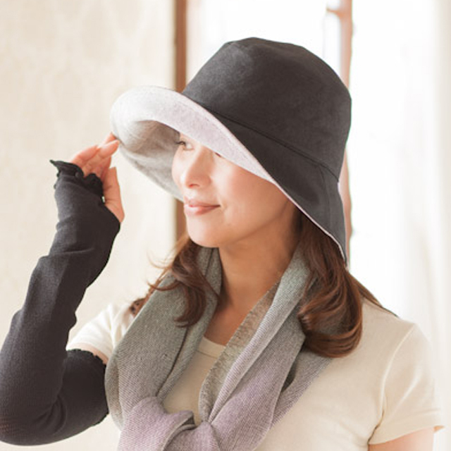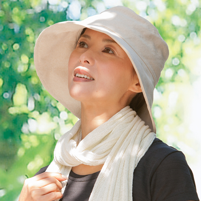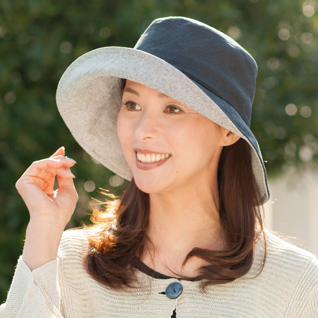 | 特徴 | きれいなシルエットと抜群のUVカット効果のある帽子です。断熱性、吸湿性、抗菌・防臭効果もあり、手洗いも可能です。表地はエクリュ・ブラック共に麻のような光沢が美しく、張りがあります。つばの先に形態安定のためのプラスチックワイヤーが入っているので、お好きな形に調整ができます。 |