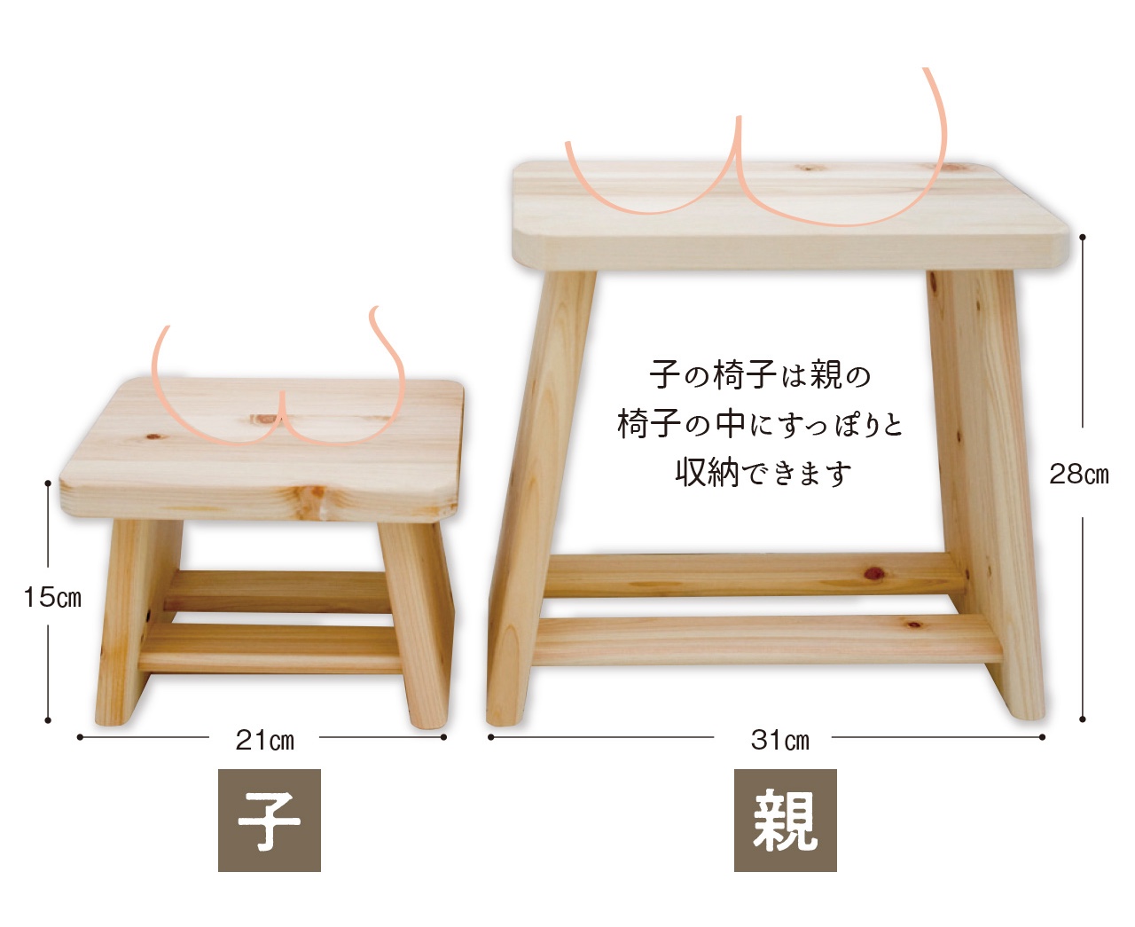 お子さま用の「子」と大人用の「親」があり、親子おそろいの風呂イスで、楽しいバスタイムをお過ごしください。