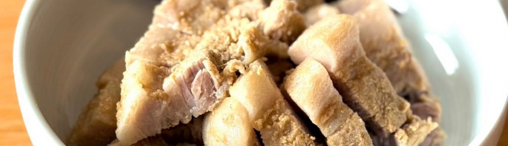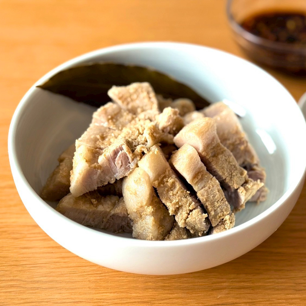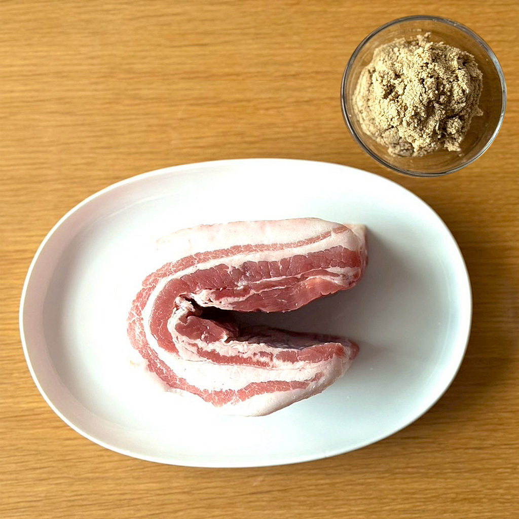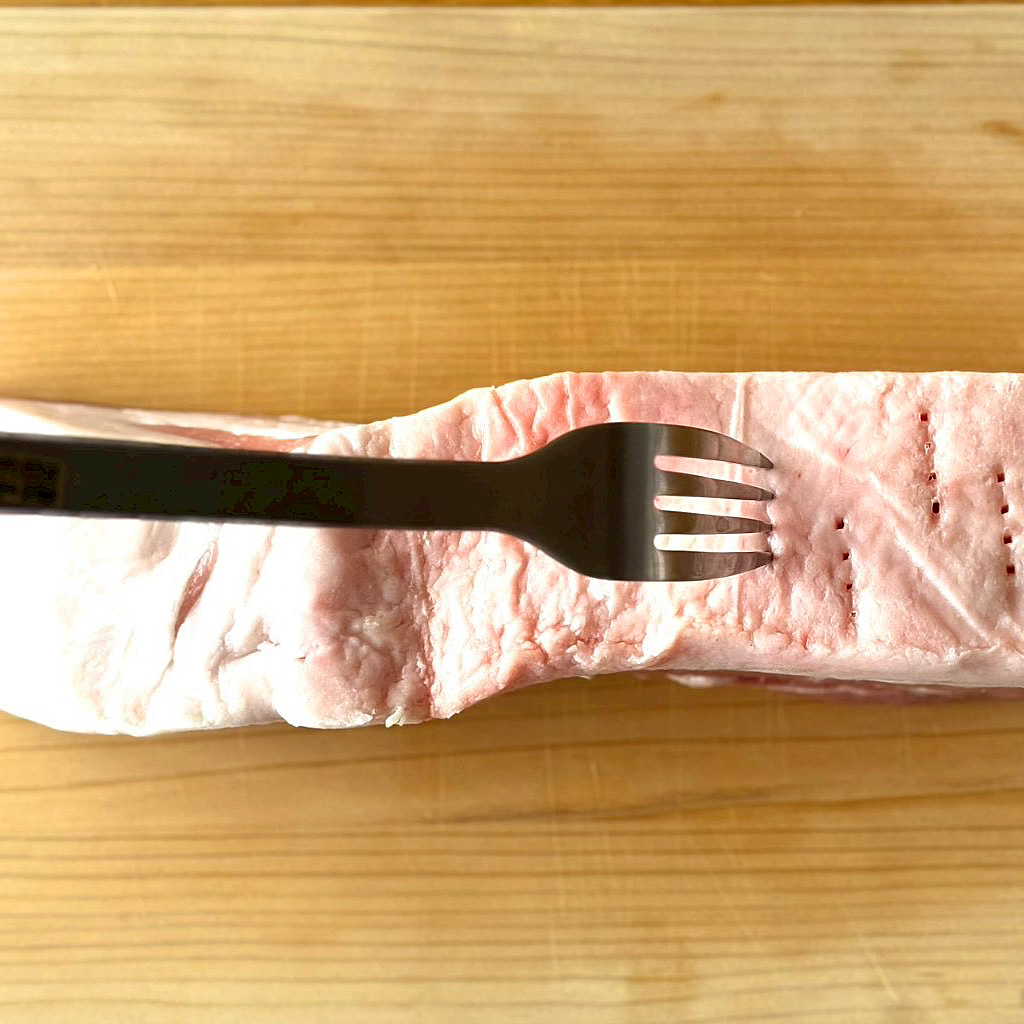1. 豚肉は表面に穴を開ける。ぬかをまんべんなく塗りつける。