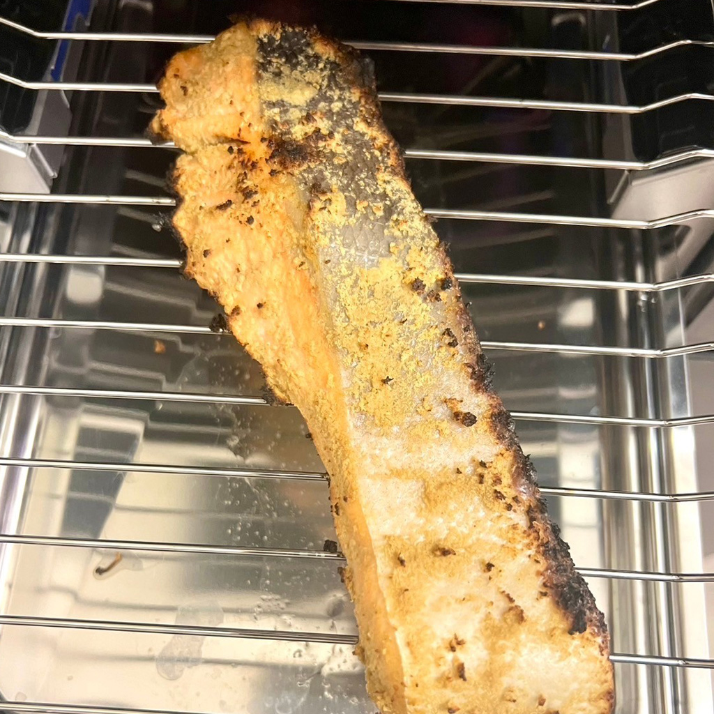 3. 表面のぬかを軽く落としてグリル、又は、フライパンに油をしきふたをして弱火で両面を焼く。