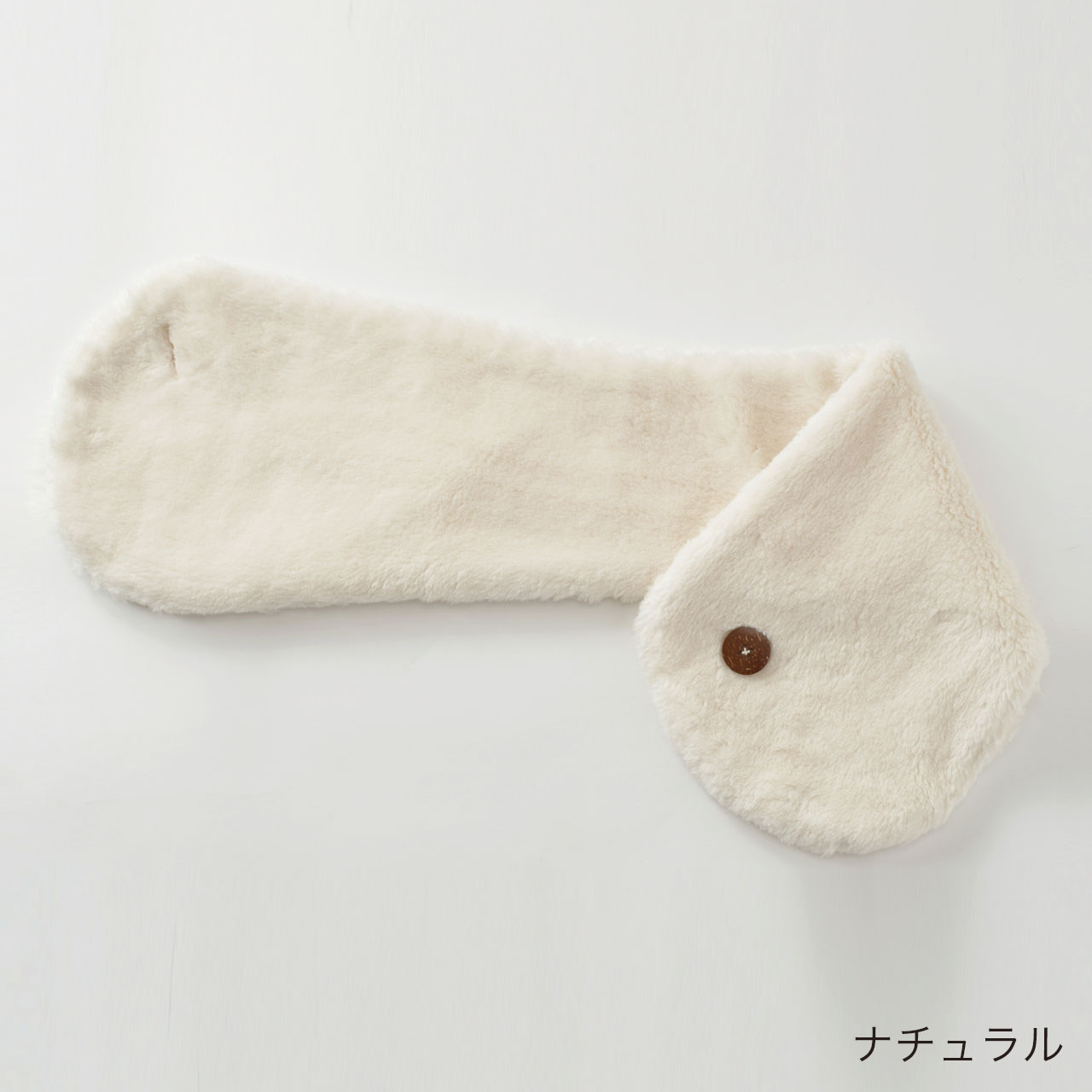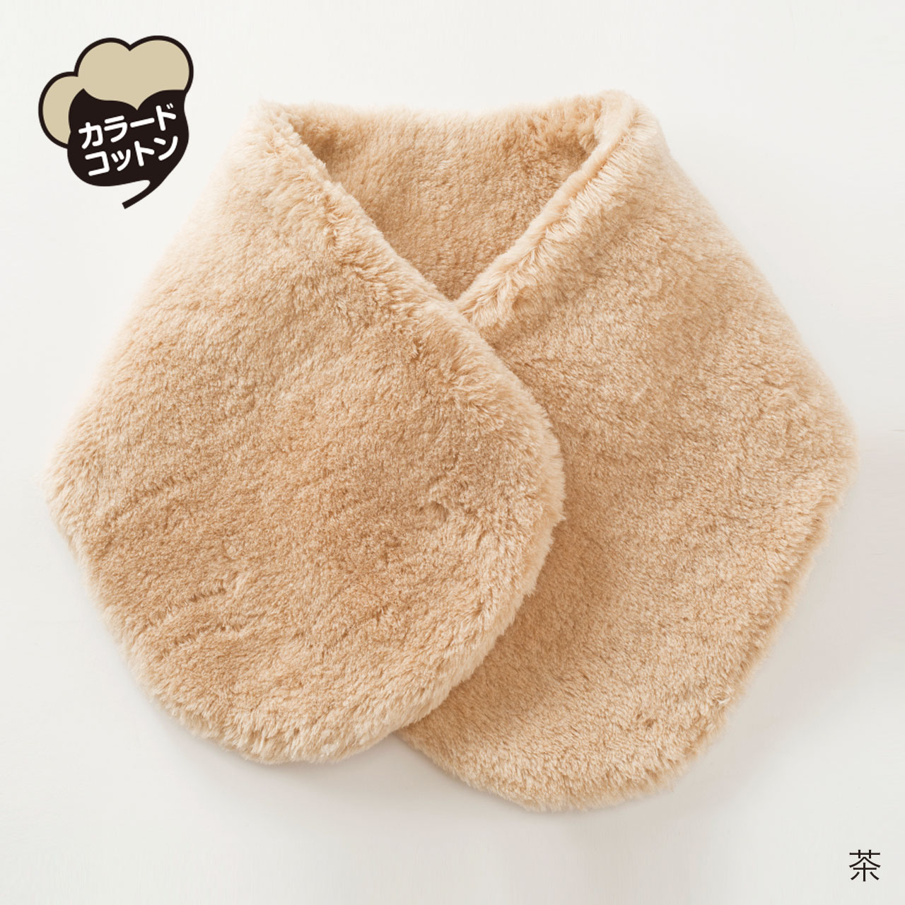 ふわふわのつけ心地のボアマフラー「オーガニックコットン 襟マフ」。襟の形をしているので、首のラインにフィットします。