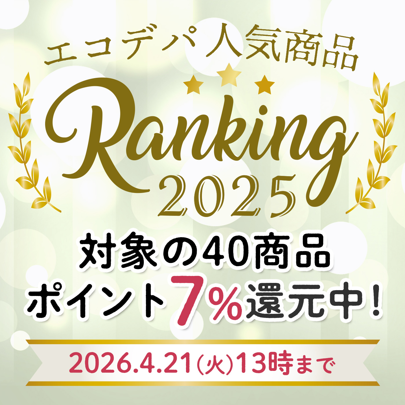 また、2026年4月21日(火)13時までの期間限定で、「人気商品ランキング2025」カテゴリーのアイテムがポイント7%還元となっております。