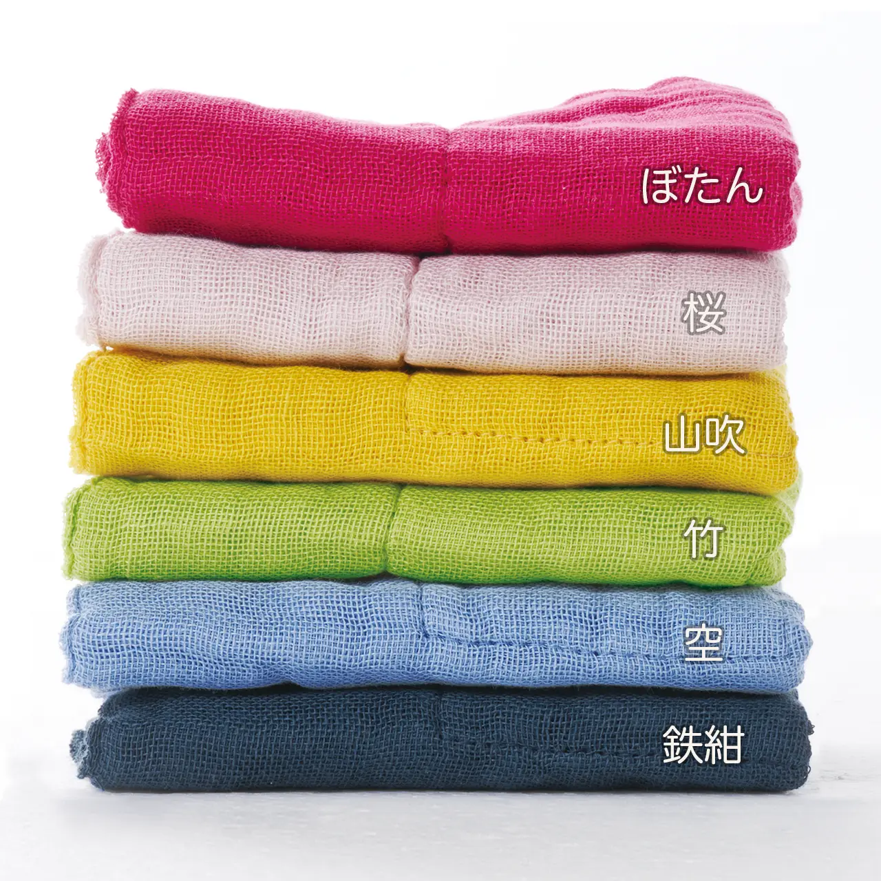 綿100%の蚊帳生地を重ね合わせた、吸水性・肌触り・速乾性に優れた「かやお台ふき」。