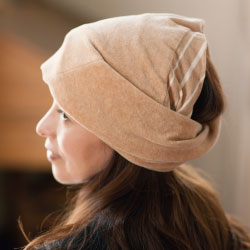 オーガニックコットン100%のベロア素材を使用したワッチです。スクリュー型で、トップは穴があいています。首に落とせばネックウォーマーとしてもお使いいただけます。