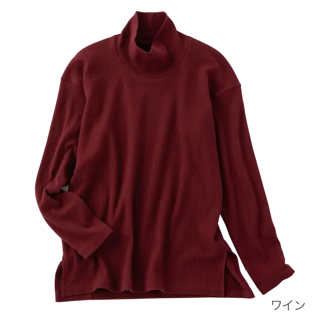 | 特徴 | オーガニックコットンの肌触りの良いリブ素材は伸縮性があり体にほどよくフィット。ゆとりのあるハイネックで首元あたたか。長めの着丈が体型カバーとスタイルアップを可能に!春先や秋は一枚で、冬はインナーとして、オールマイティーに着回せます。 |